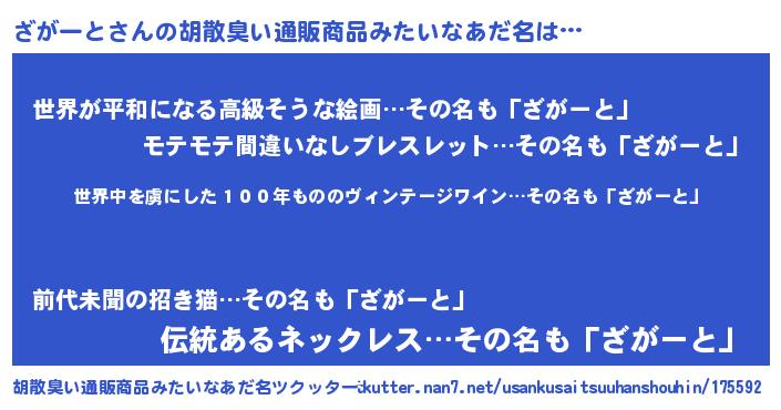 ざがーとさんの胡散臭い通販商品みたいなあだ名をツクッター!