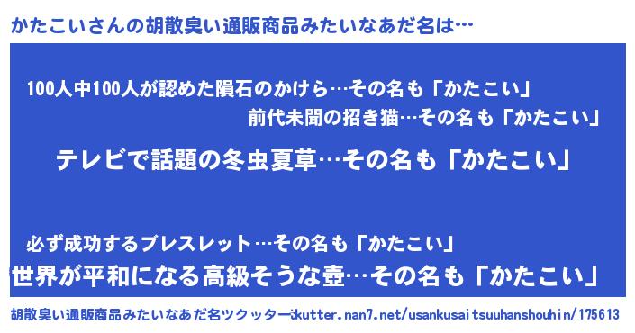 | ヒーロー風カッコイイあだ名 | 『最強戦士カタコイ』『ネオカタコイ』 |