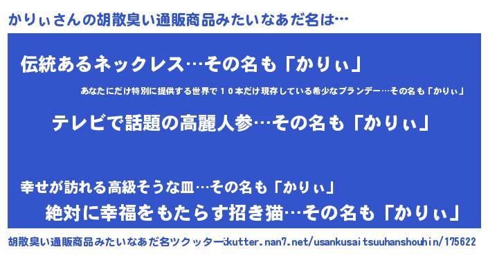 かりぃさんの胡散臭い通販商品みたいなあだ名をツクッター!