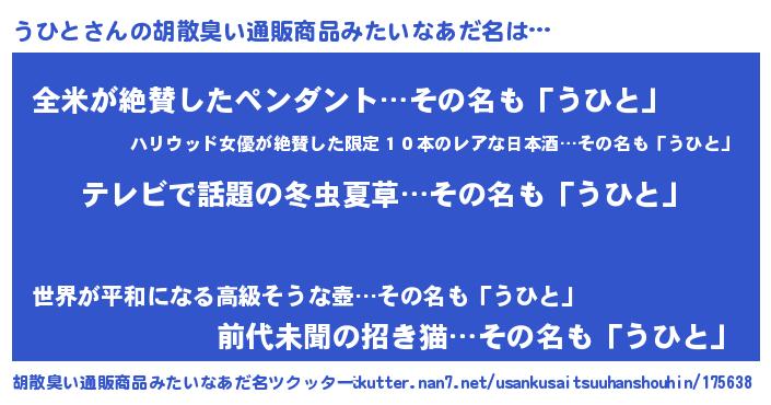 | ヘコむあだ名 | 『うひっちょ』『うひと(苦笑)』 |