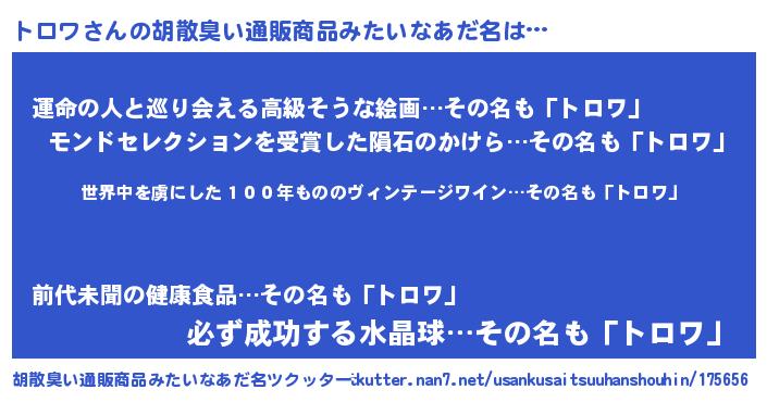 | 意味不明あだ名 | 『住所不定無職トロワ(9歳)』 |