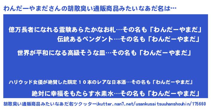 | 男性向けラノベタイトル風あだ名 | 『はたらくわんだーやまださま!』 |