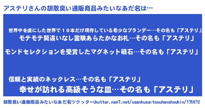 | ヒーロー風カッコイイあだ名 | 『慈愛の使者アステリ』『仮面アスダー』 |