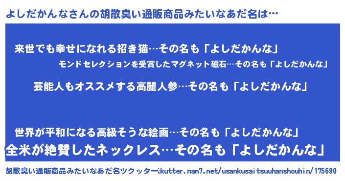 | 意味不明あだ名 | 『自称よしだかんな』 |