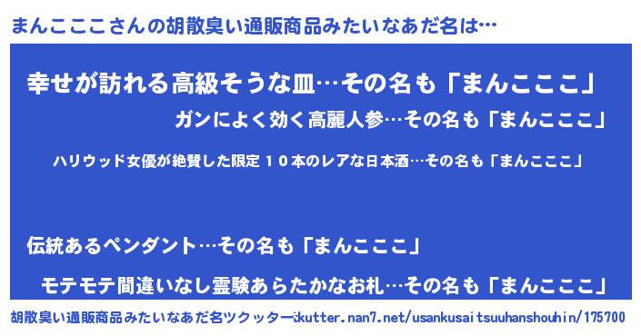 | 意味不明あだ名 | 『住所不定無職まんこここ(39歳)』 |