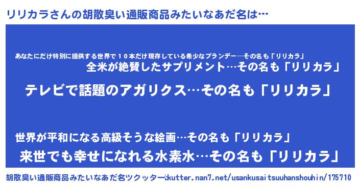 | ヘコむあだ名 | 『リリカラ(爆)』『リリぷりん』 |
