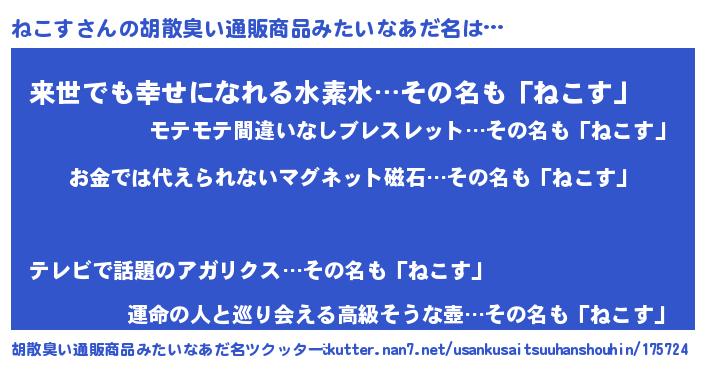 | ヘコむあだ名 | 『ねこす(笑)』『牛乳』『ねこにゅー』 |