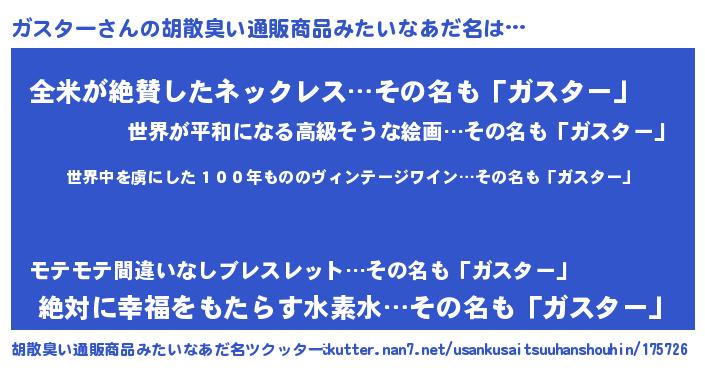 | 意味不明あだ名 | 『住所不定無職ガスター(5歳)』 |