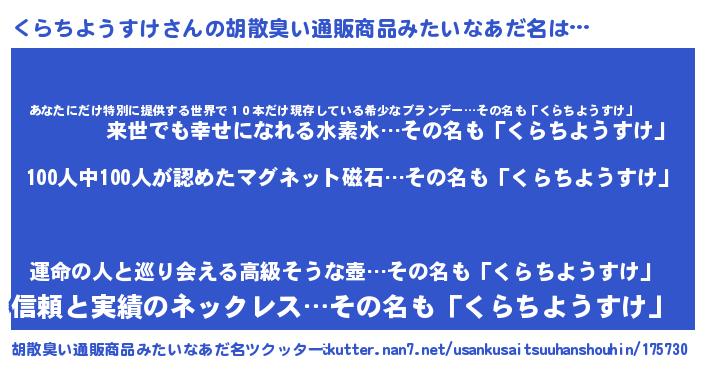 | 男性向けラノベタイトル風あだ名 | 『はたらくくらちようすけさま!』 |