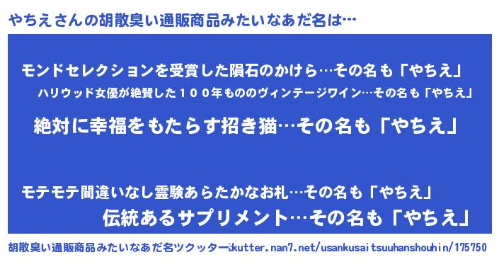 やちえさんの胡散臭い通販商品みたいなあだ名をツクッター!