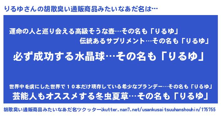 | 意味不明あだ名 | 『ペロリンりるゆ』『りるゆフォーエバー』 |