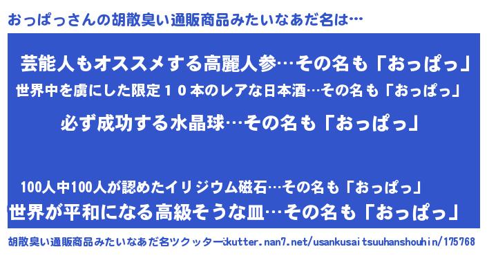 | ヒーロー風カッコイイあだ名 | 『スーパーオッパッ』『究極戦士オッパッ』 |