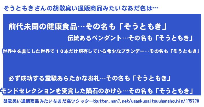 | 意味不明あだ名 | 『住所不定無職そうともき(84歳)』 |