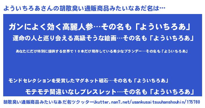 | 欧米人風あだ名 | 『アンジェラ・よういちろあ』 |
