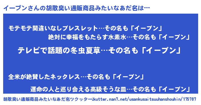 | 意味不明あだ名 | 『なめこ科イーブン属』『自称イーブン』 |