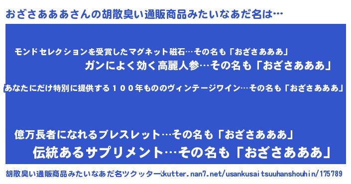 | 欧米人風あだ名 | 『アンジェラ・おざさあああ』 |