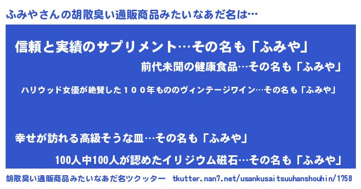 | 意味不明あだ名 | 『住所不定無職ふみや(7歳)』 |