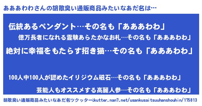 | ヘコむあだ名 | 『あああわわ(小並感)』『ああっちょ』 |