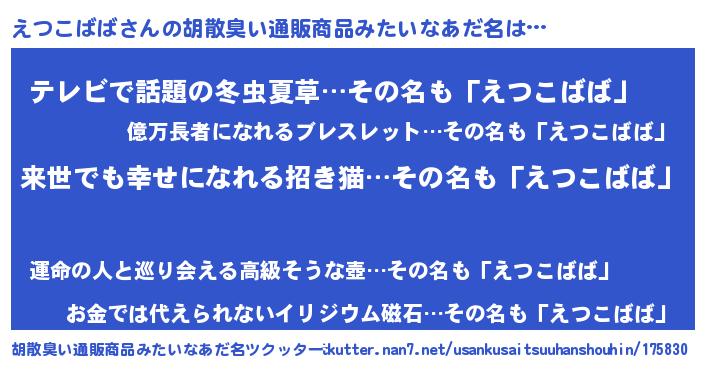 えつこばばさんの胡散臭い通販商品みたいなあだ名をツクッター!