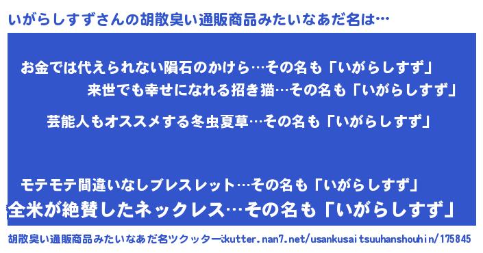 | ヘコむあだ名 | 『いがっちょ』『いがらしすず(笑)』 |