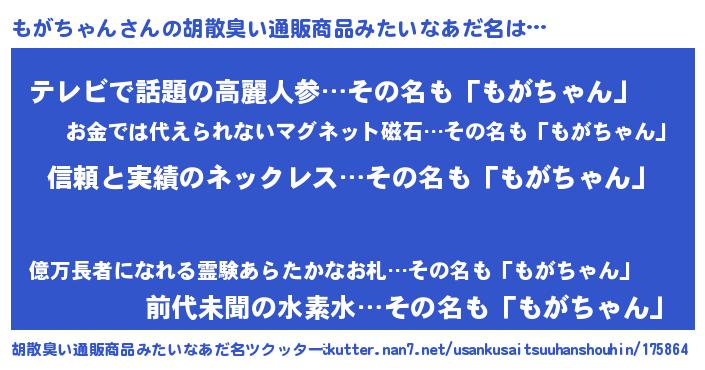 | ヘコむあだ名 | 『もがっぺ』『もがちゃん(小並感)』 |