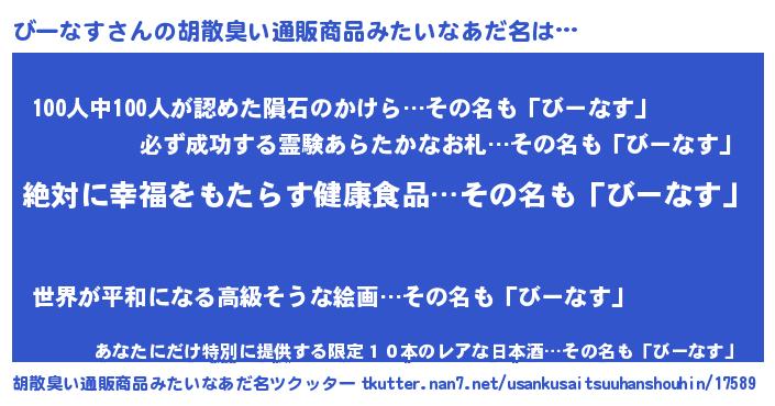 | ヘコむあだ名 | 『びーなす(爆)』『びーにー』 |
