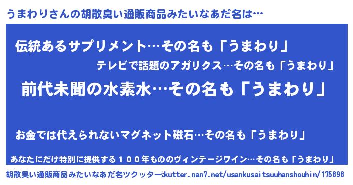 | 意味不明あだ名 | 『永久保存うまわり』『自称うまわり』 |