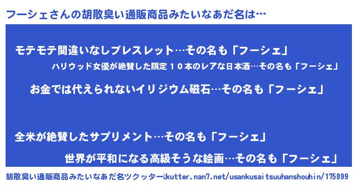 | 女子向けラノベタイトル風あだ名 | 『フーシェ恋絵巻』『フーシェの婚約者』 |