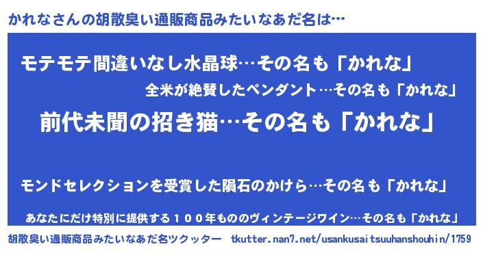 | ヘコむあだ名 | 『かれな(小並感)』『かれにゅー』 |