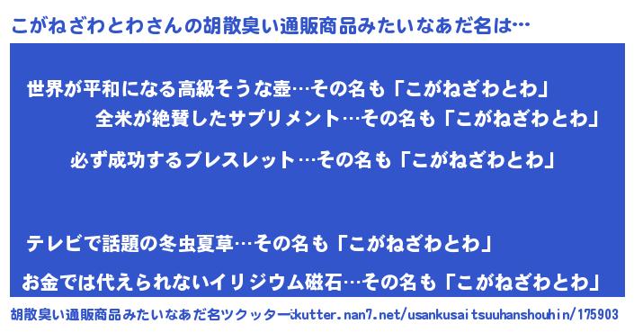 | 恥ずかしいあだ名 | 『プリティーこがねざわとわ』 |