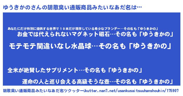 | 恥ずかしいあだ名 | 『プリティーゆうきかの』『ゆうっちょ』 |