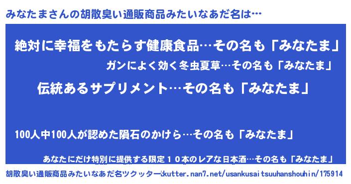 | 意味不明あだ名 | 『とにかく怪しいみなたま』 |