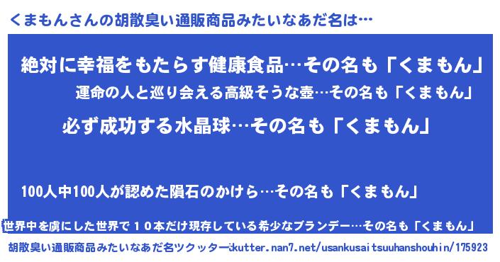 | 意味不明あだ名 | 『ペロリンくまもん』『永久保存くまもん』 |