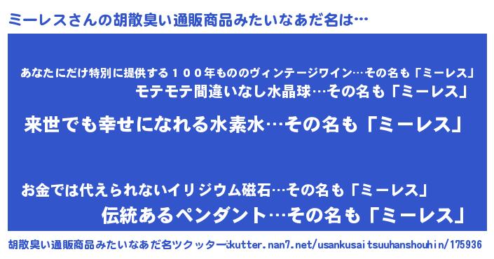 | ヘコむあだ名 | 『ミーレス(震え声)』『ミーを』 |