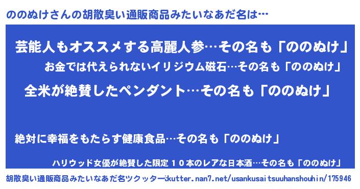 | 意味不明あだ名 | 『とにかく怪しいののぬけ』 |