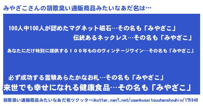 | ヘコむあだ名 | 『みやざこ(笑)』『みやを』 |