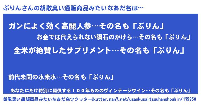 | ヘコむあだ名 | 『ぶりを』『ぶりん(小並感)』 |