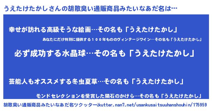 | 肩書あだ名 | 『うえたけたかしCEO』 |