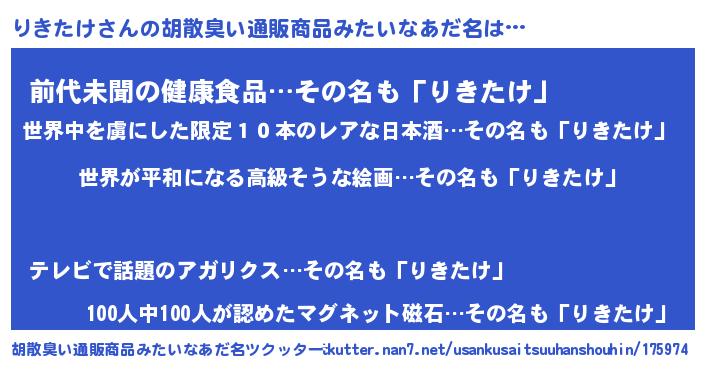 | 欧米人風あだ名 | 『りきたけクリステル』 |