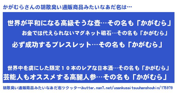 | 意味不明あだ名 | 『ペロリンかがむら』『自称かがむら』 |