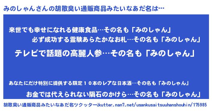 | 意味不明あだ名 | 『自称みのしゃん』『永久保存みのしゃん』 |