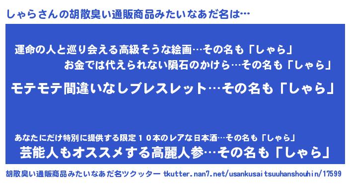 | ヒーロー風カッコイイあだ名 | 『スーパーシャラ』『ウルトラしゃらマン』 |