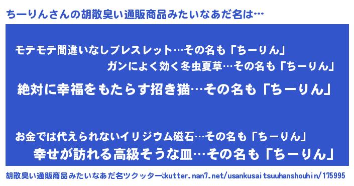 | 伝説のあだ名 | 『聞きしに勝る吟遊詩人ちーりん』 |