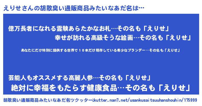 | 欧米人風あだ名 | 『ダレノガレえりせ』『マイケルえりせ』 |