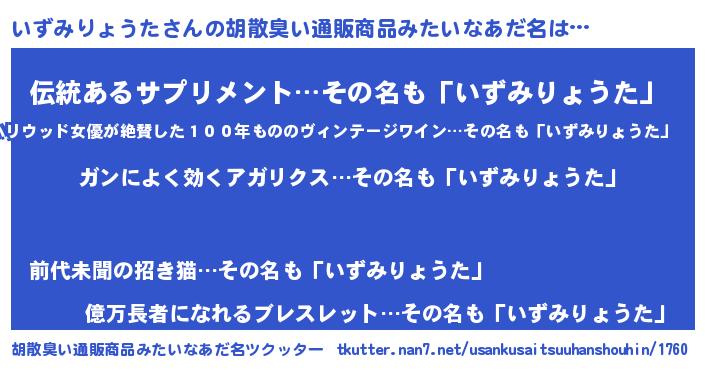 | 男性向けラノベタイトル風あだ名 | 『イズミリョウタスレイヤー』 |