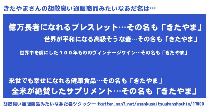 | 意味不明あだ名 | 『住所不定無職きたやま(5歳)』 |