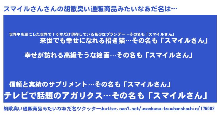 | 意味不明あだ名 | 『スマイルさんフォーエバー』 |