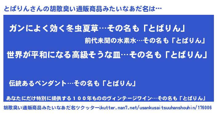 | ヒーロー風カッコイイあだ名 | 『ウルトラとばりんマン』『仮面トバダー』 |