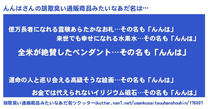 | 意味不明あだ名 | 『とにかく怪しいんんは』 |