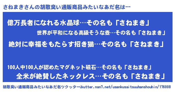 | ヘコむあだ名 | 『さねまき(小並感)』『さねにゅー』 |